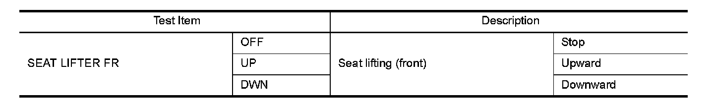 1. Select "SEAT LIFTER FR" in "Active test" mode with CONSULT-III.