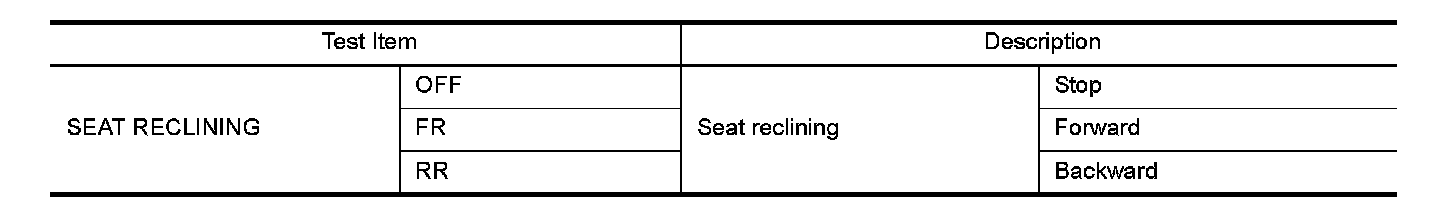 1. Select "SEAT RECLINING" in "Active test" mode with CONSULT-III.