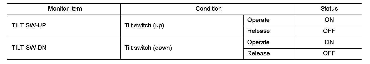 1. Select "TILT SW-UP", "TILT SW-DN" in "Data monitor" mode with CONSULT-III.