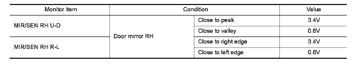1. Select "MIR/SEN RH U-D", "MIR/SEN RH R-L" in "Data monitor" with CONSULT-III.