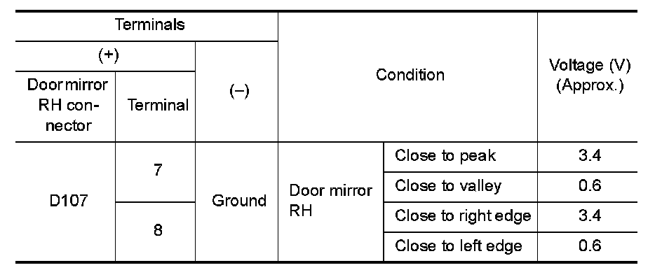 - The resistance of 2 sensors (horizontal and vertical) is changed when the door mirror RH is operated.