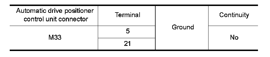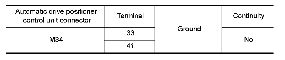 2. Check continuity between automatic drive positioner control unit harness connector and ground.