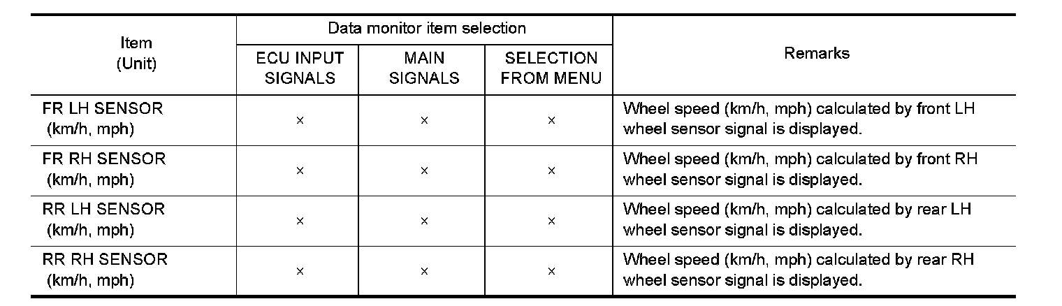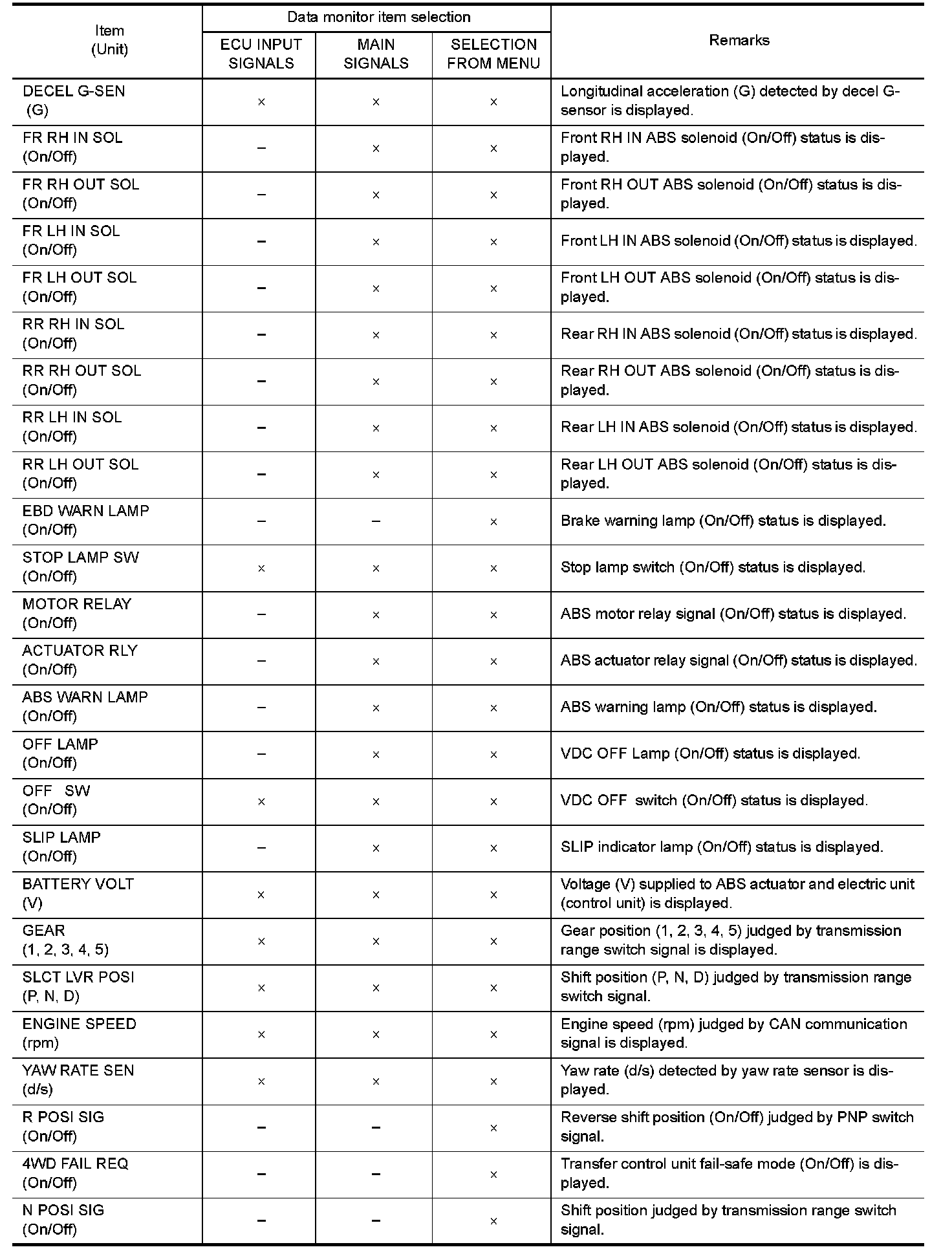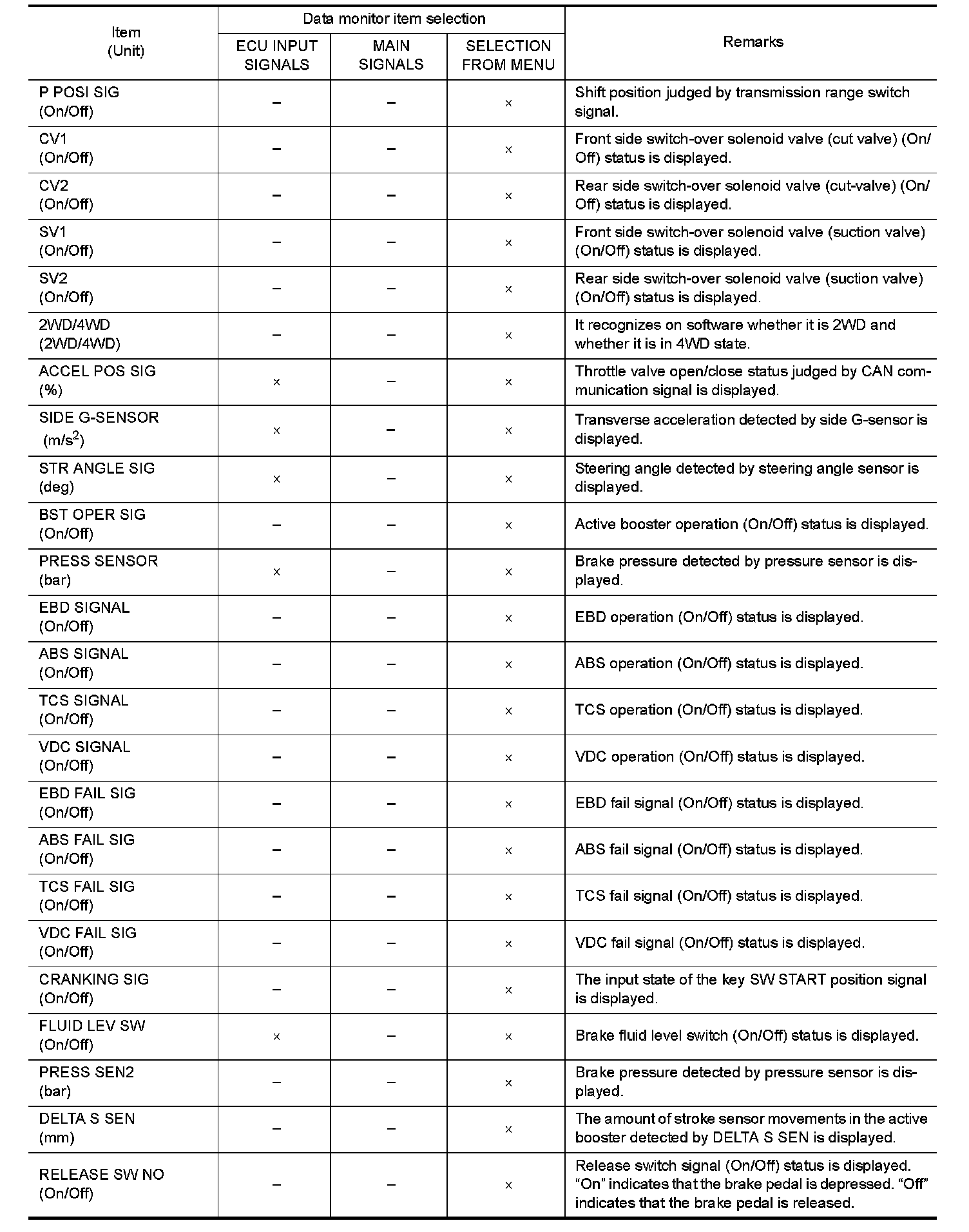 - When performing an active test of the ABS function, select the "MAIN SIGNALS" for each test item.