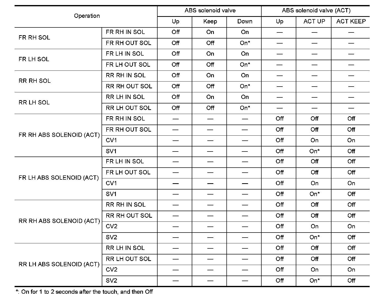 (ACT), touch "Up", "ACT UP", "ACT KEEP" and confirm that solenoid valves operate as shown in the table below.