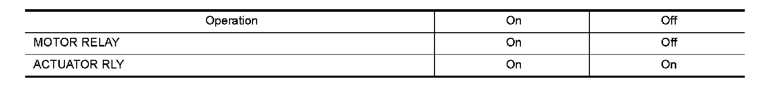 - Touch "On" and "Off" on screen. Make sure motor relay and actuator relay operates as shown in table below.