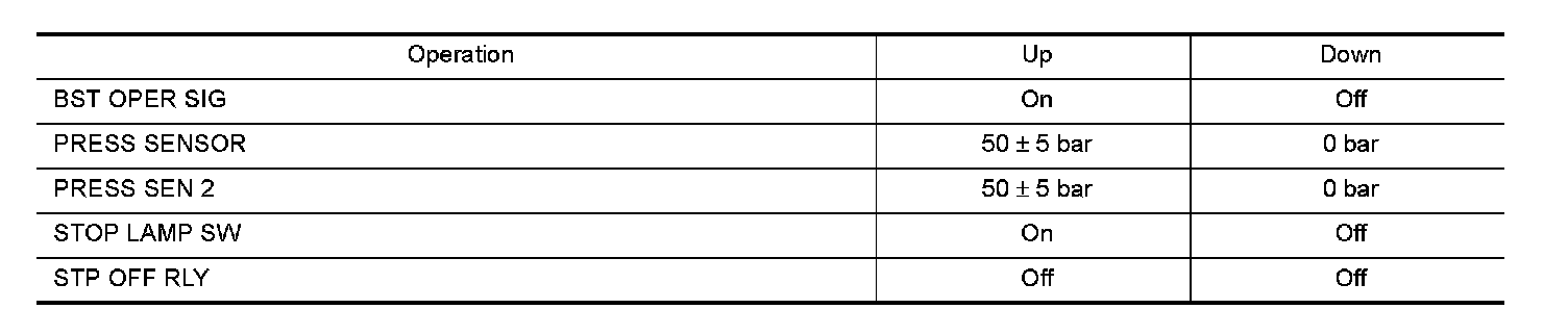 - Touch "Up" and "Down" on the screen. Check that booster drive operates as shown in table below.