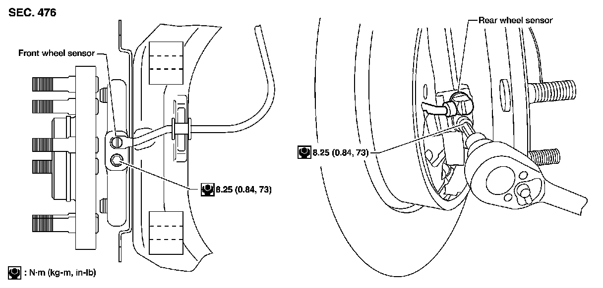 Installation is in the reverse order of removal. Tighten wheel sensor bolt to specification.