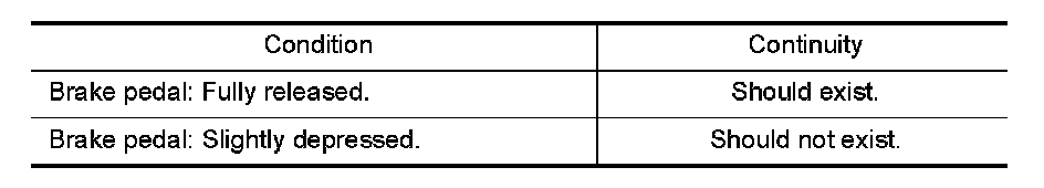 3. Check continuity between ICC brake switch terminals 1 and 2 under the following conditions.