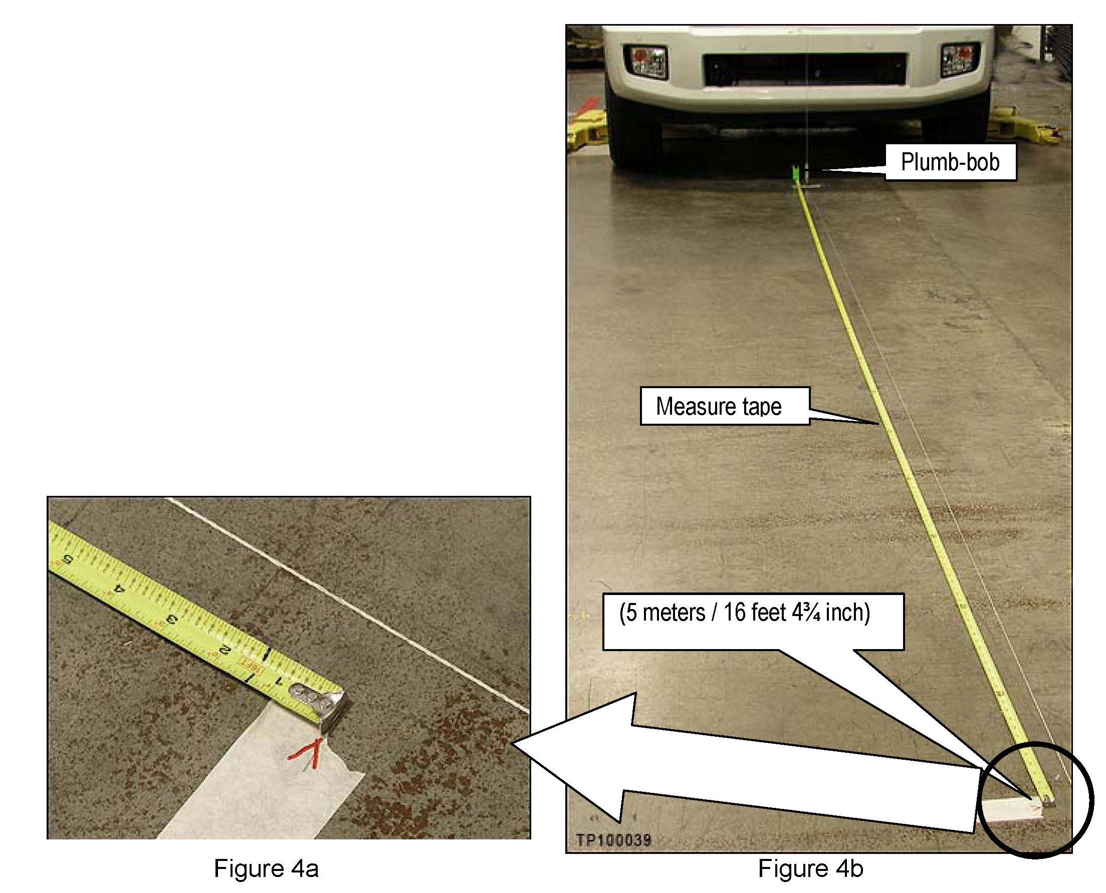 8. Measure 5 meters (16 feet 43A inch) in front of the vehicle (from the plumb-bob).
