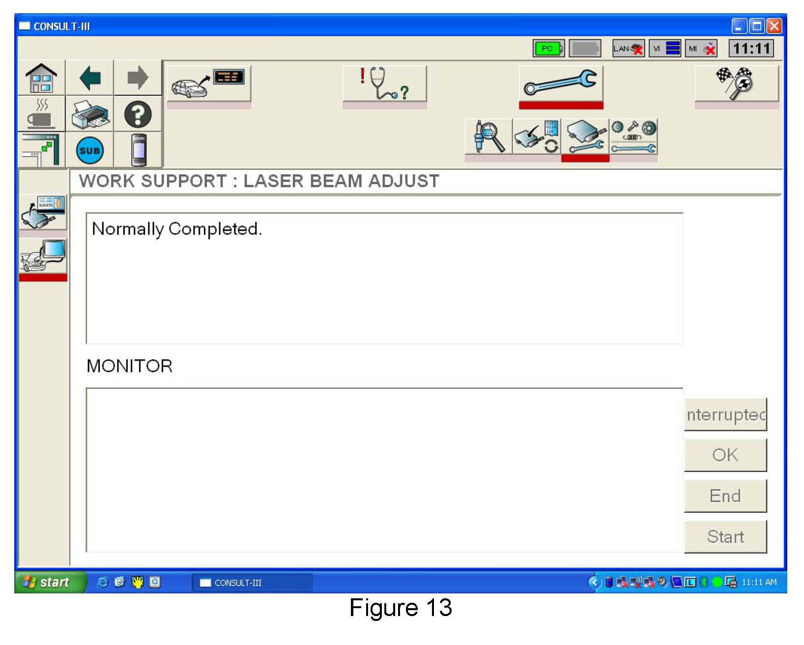21. Navigate C-III to: System Diagnosis > ICC/ADAS > Work Support > LASER BEAM ADJUST