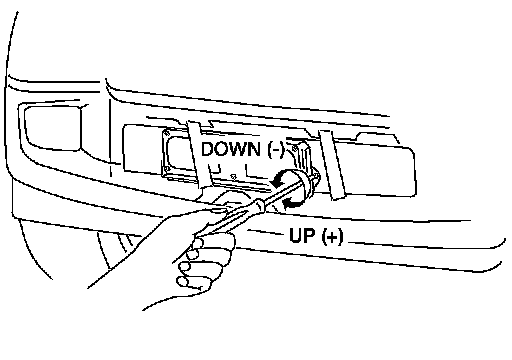 After the CONSULT-III displays "ADJUST THE VERTICAL OF LASER BEAM AIMING" turn the vertical adjusting screw until "U/D CORRECT" value is set in the range of �4.