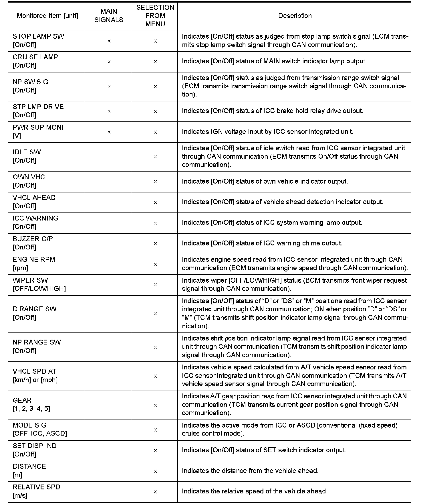 DIAGNOSIS SYSTEM (ICC SENSOR INTEGRATED UNIT)