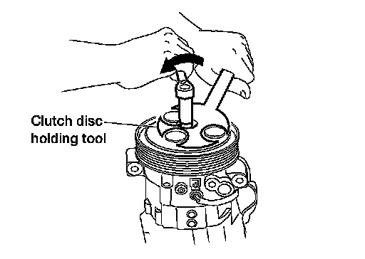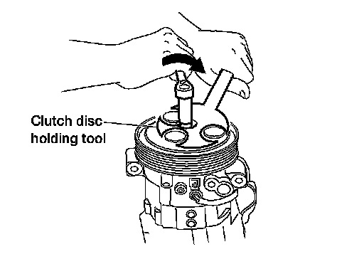 4. Install the clutch pulley bolt while using Tool to prevent the clutch disc from turning and tighten the bolt to specification.