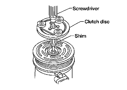 3. Install the clutch disc on the compressor shaft, together with all the original shim(s) using a suitable tool. Press the clutch disc in by hand.