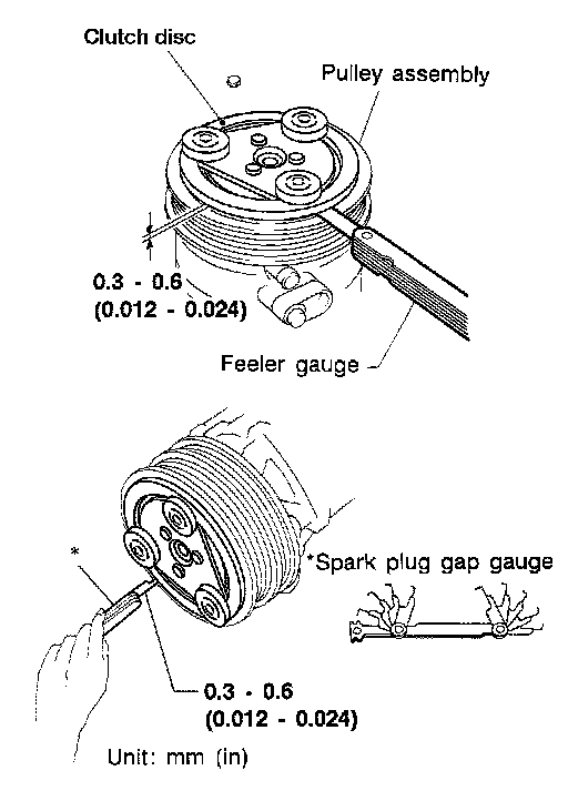 Clutch disc-to-pulley clearance : 0.3 - 0.6 mm (0.012 - 0.024 in)