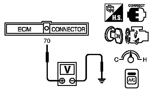 3. Check voltage between ECM terminal 70 and ground with CONSULT-III or tester.