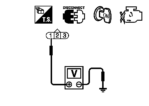 3. Check voltage between refrigerant pressure sensor terminal 1 and ground with CONSULT-III or tester.