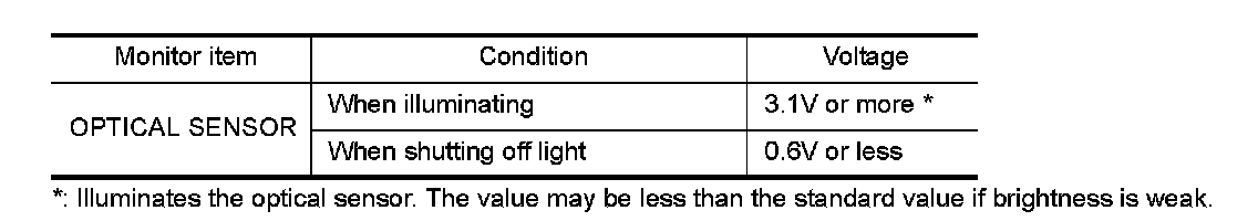 2. Select "OPTICAL SENSOR" of BCM (HEAD LAMP) DATA MONITOR item.