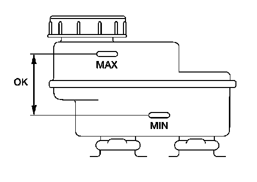 - Make sure the fluid level in reservoir tank is between MAX and MIN lines as shown.
