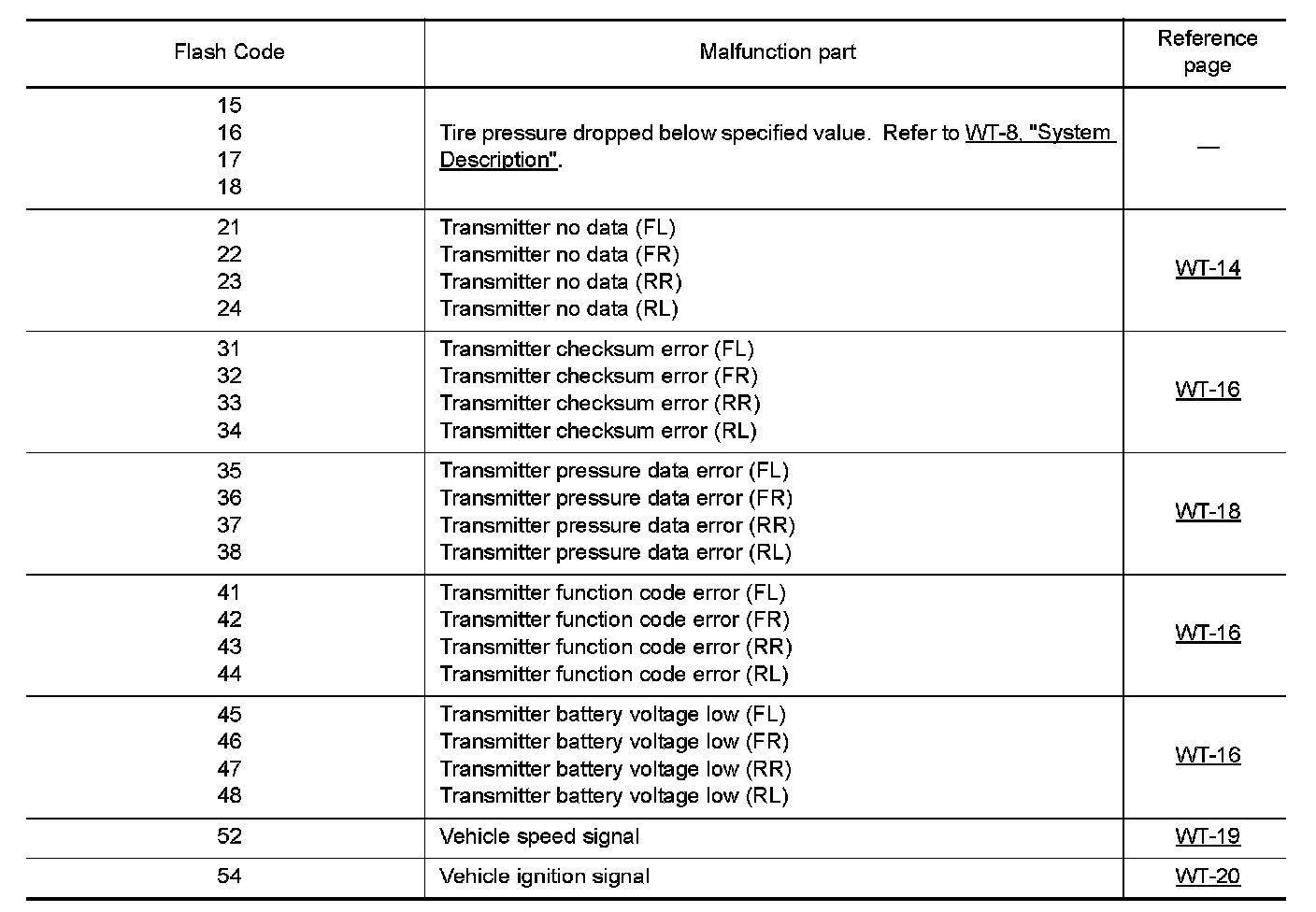 The system is normal when the low tire pressure warning lamp flashes 5 times and continues repeating. Self-diagnosis results are erased automatically by turning the ignition switch "OFF".