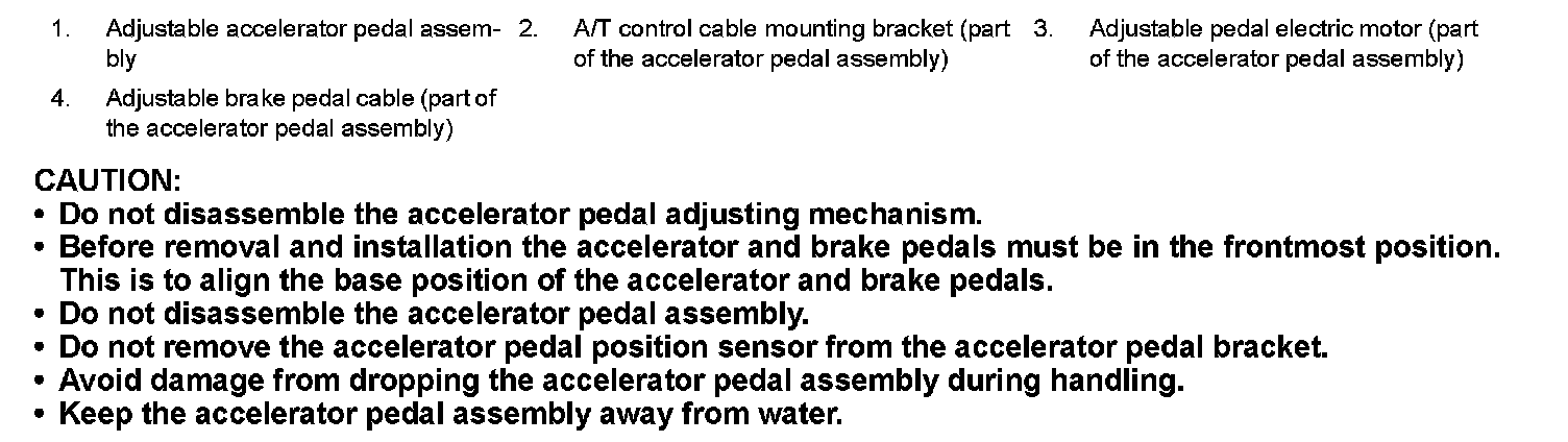 - Do not disassemble the accelerator pedal adjusting mechanism.