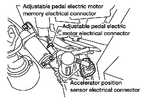 5. Disconnect the adjustable pedal electric motor memory electrical connector.
