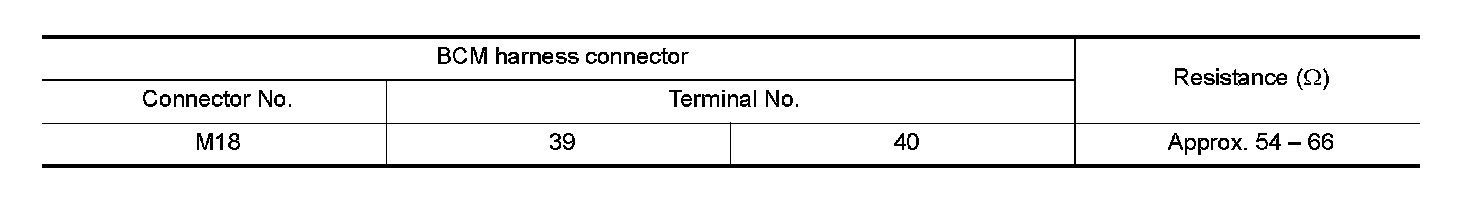 2. Check the resistance between the BCM harness connector terminals.