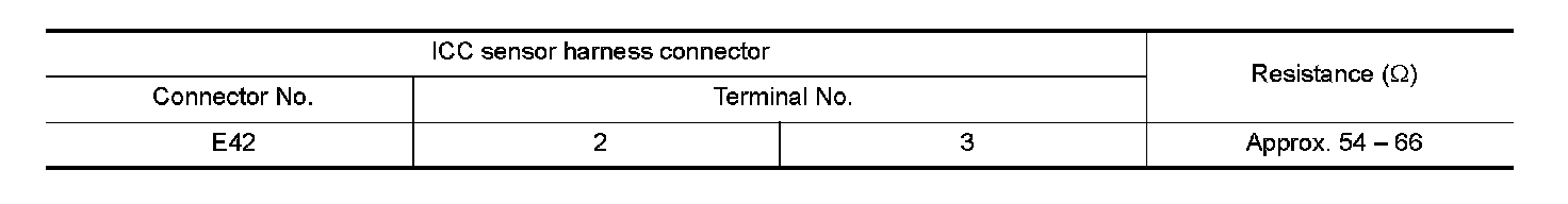 2. Check the resistance between the ICC sensor harness connector terminals.