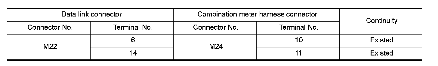 4. Check the continuity between the data link connector and the combination meter harness connector.