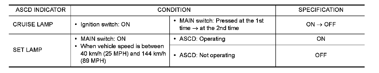 Check ASCD indicator under the following conditions.