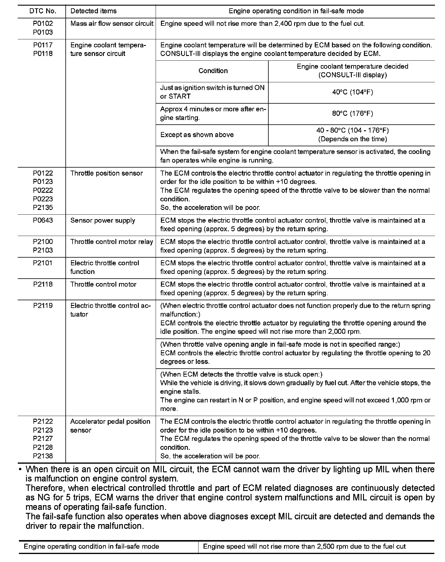 When the DTC listed below is detected, the ECM enters fail-safe mode and the MIL lights up.