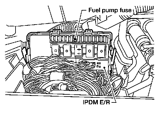 7. Remove fuel pump fuse in IPDM E/R to release fuel pressure.