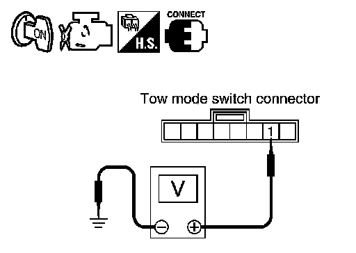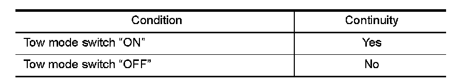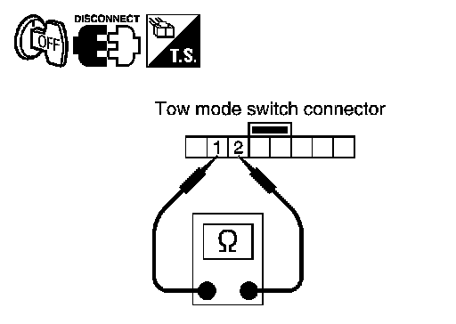 - Harness for short or open between tow mode switch connector terminal 2 and ground.