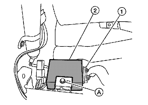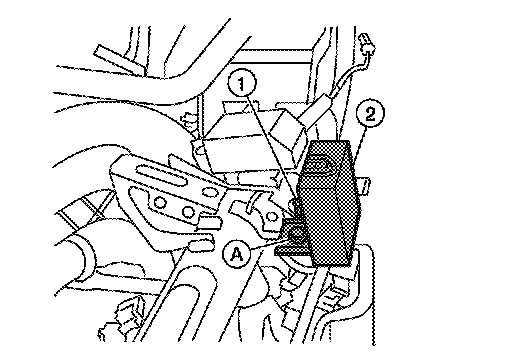 2. Disconnect the wire harness (1), remove the bolt (A) and the