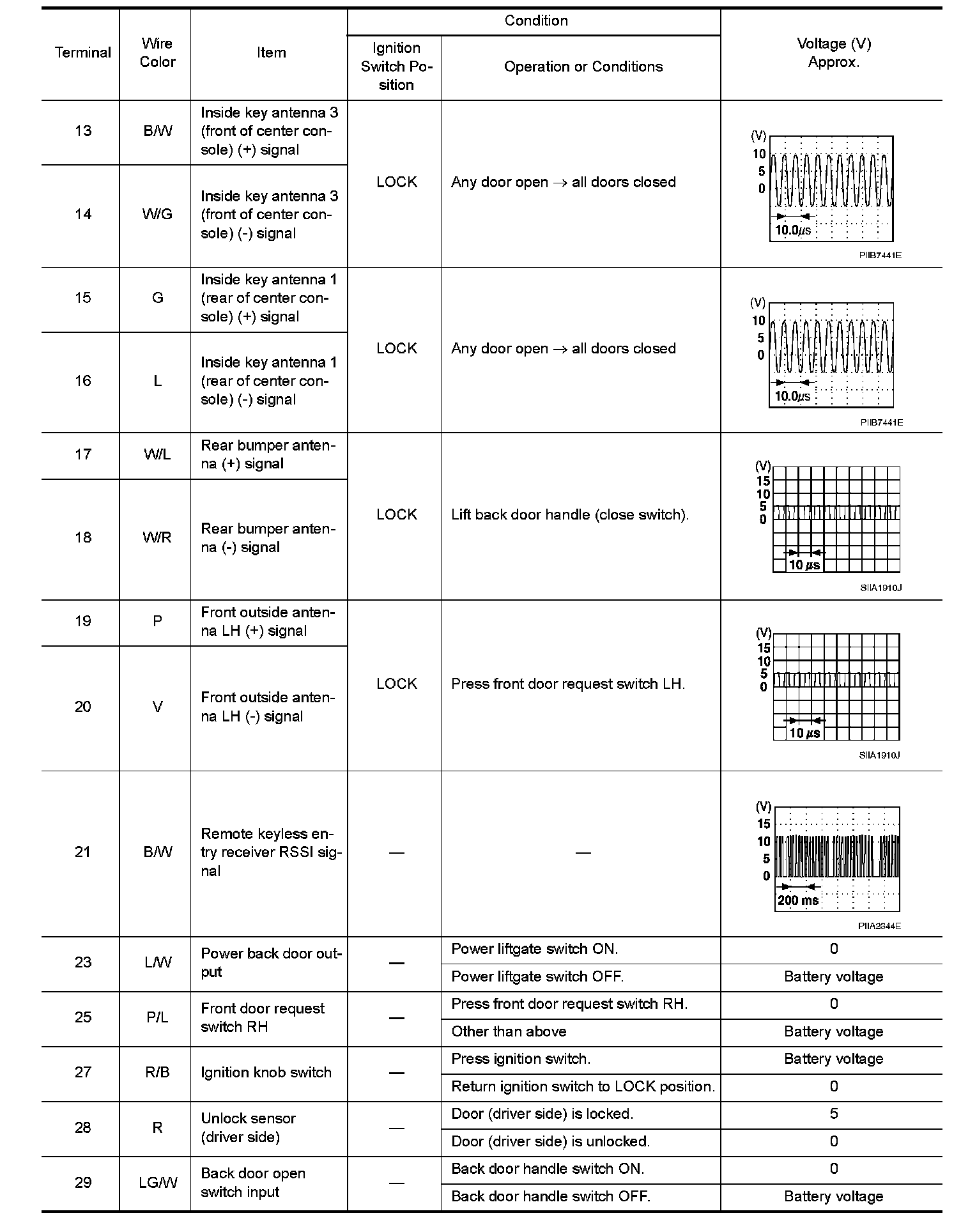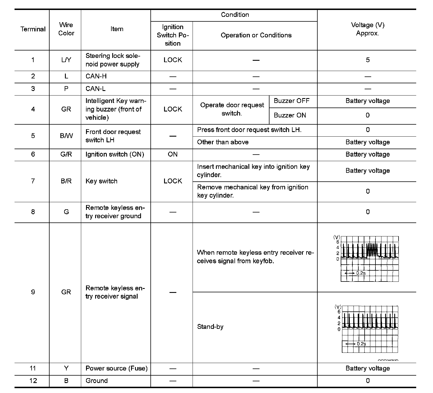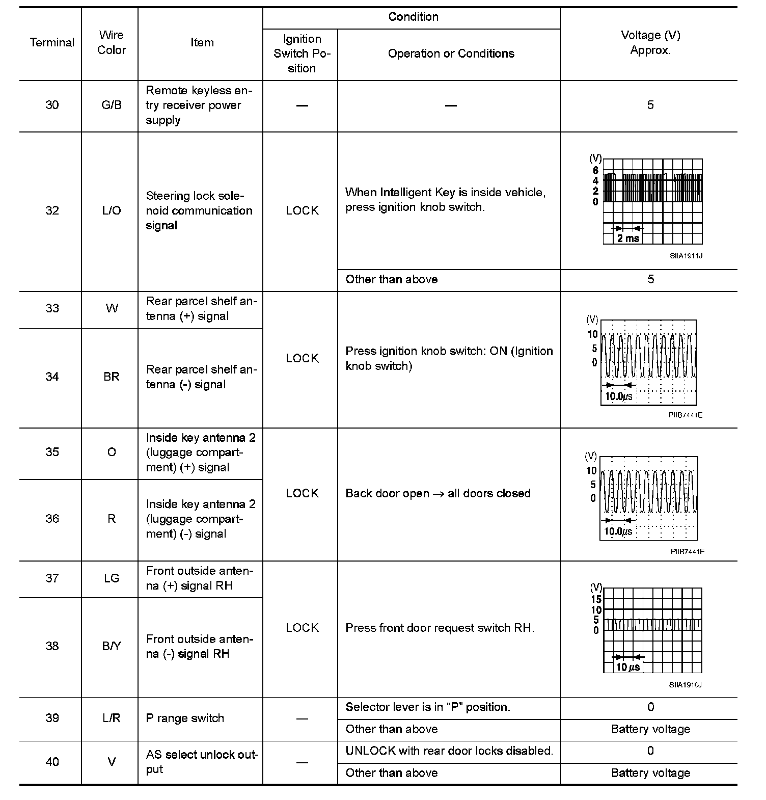 Pinout Values and Diagnostic Parameters