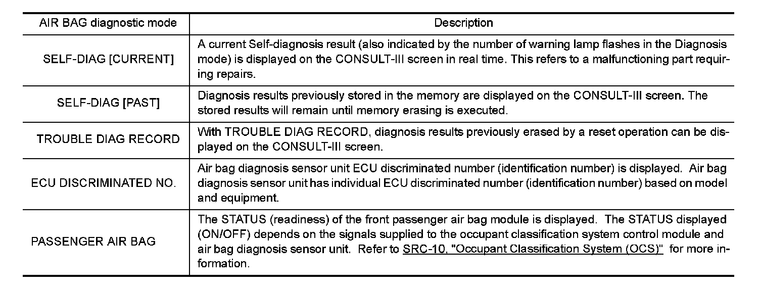 CONSULT-III Function (Air Bag)