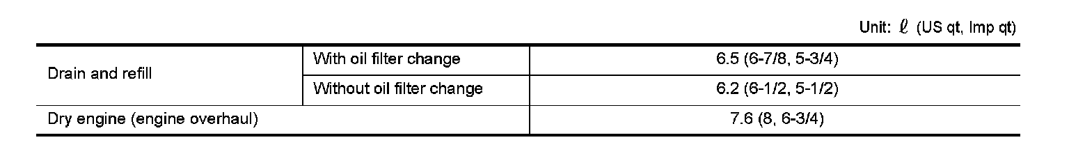 ENGINE OIL CAPACITY (APPROXIMATE)