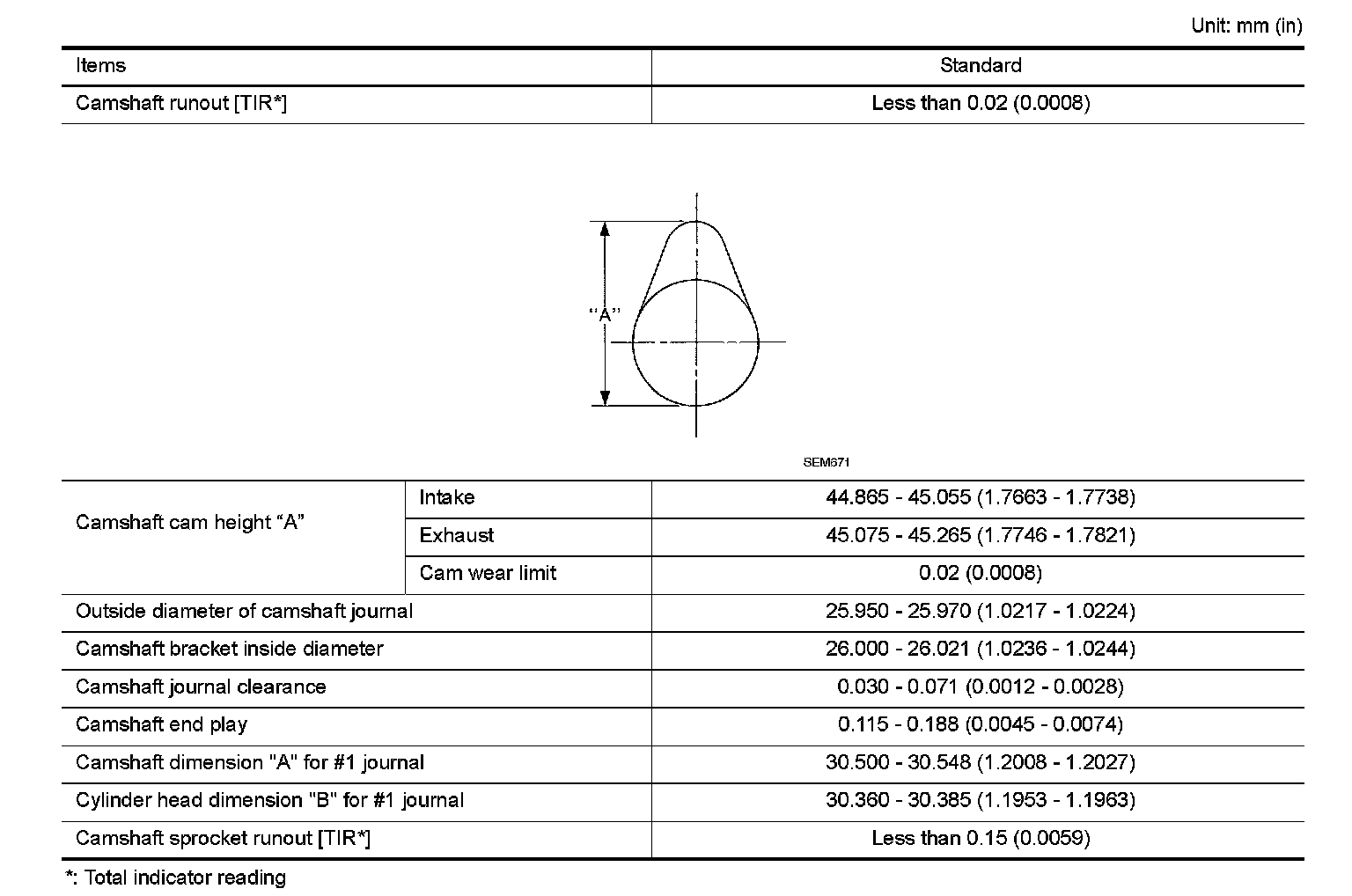 CAMSHAFT AND CAMSHAFT BEARING