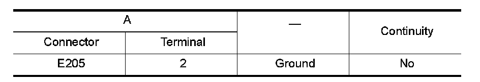 2. Apply ground to generator harness connector E205 terminal 2 with the ignition switch in the ON position.