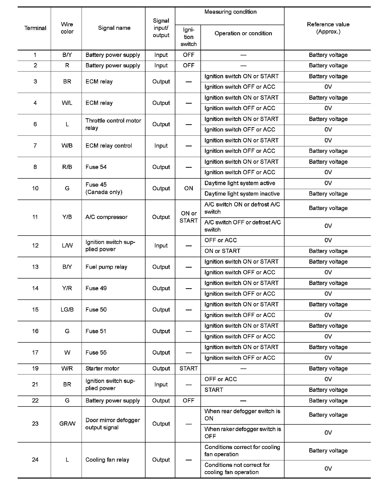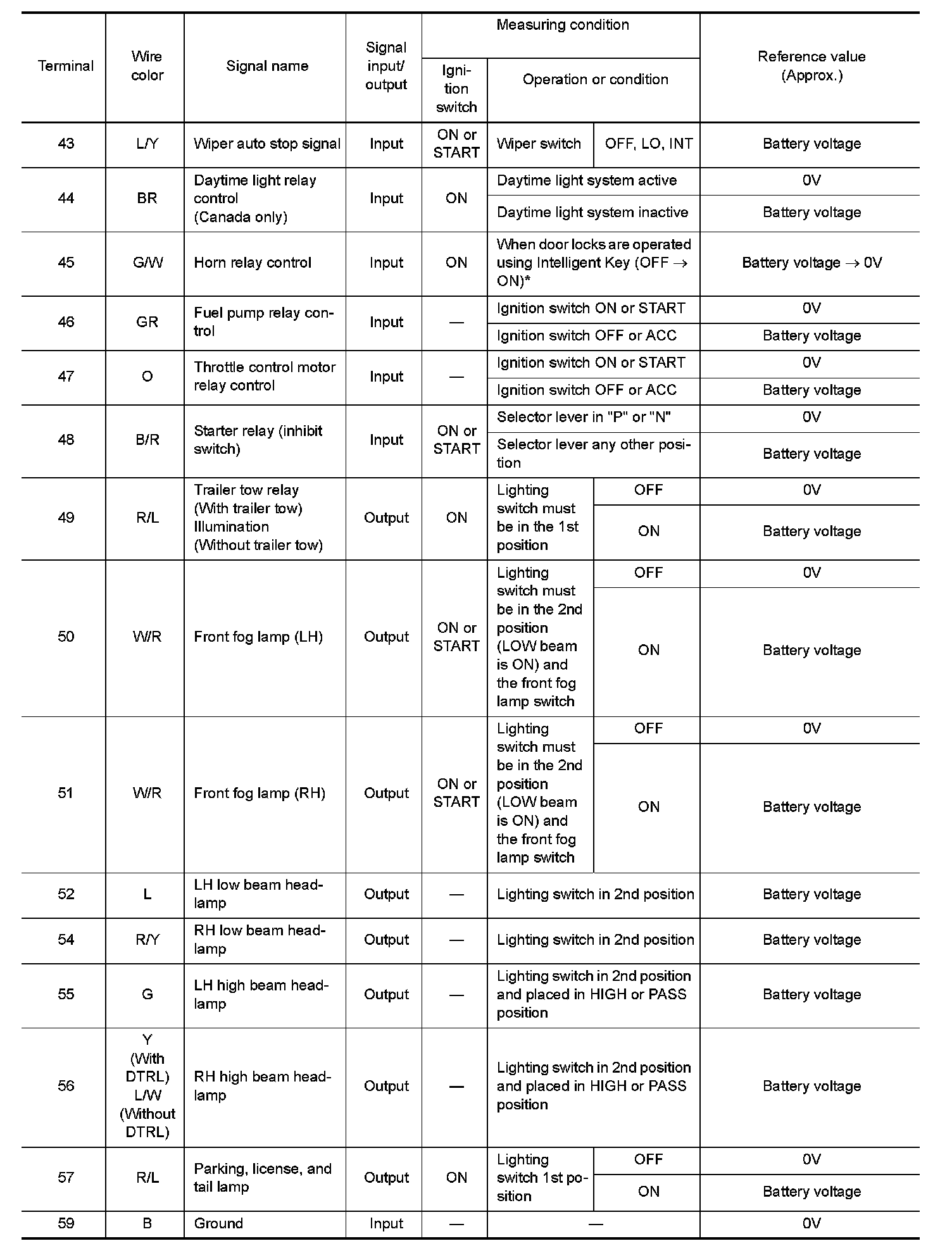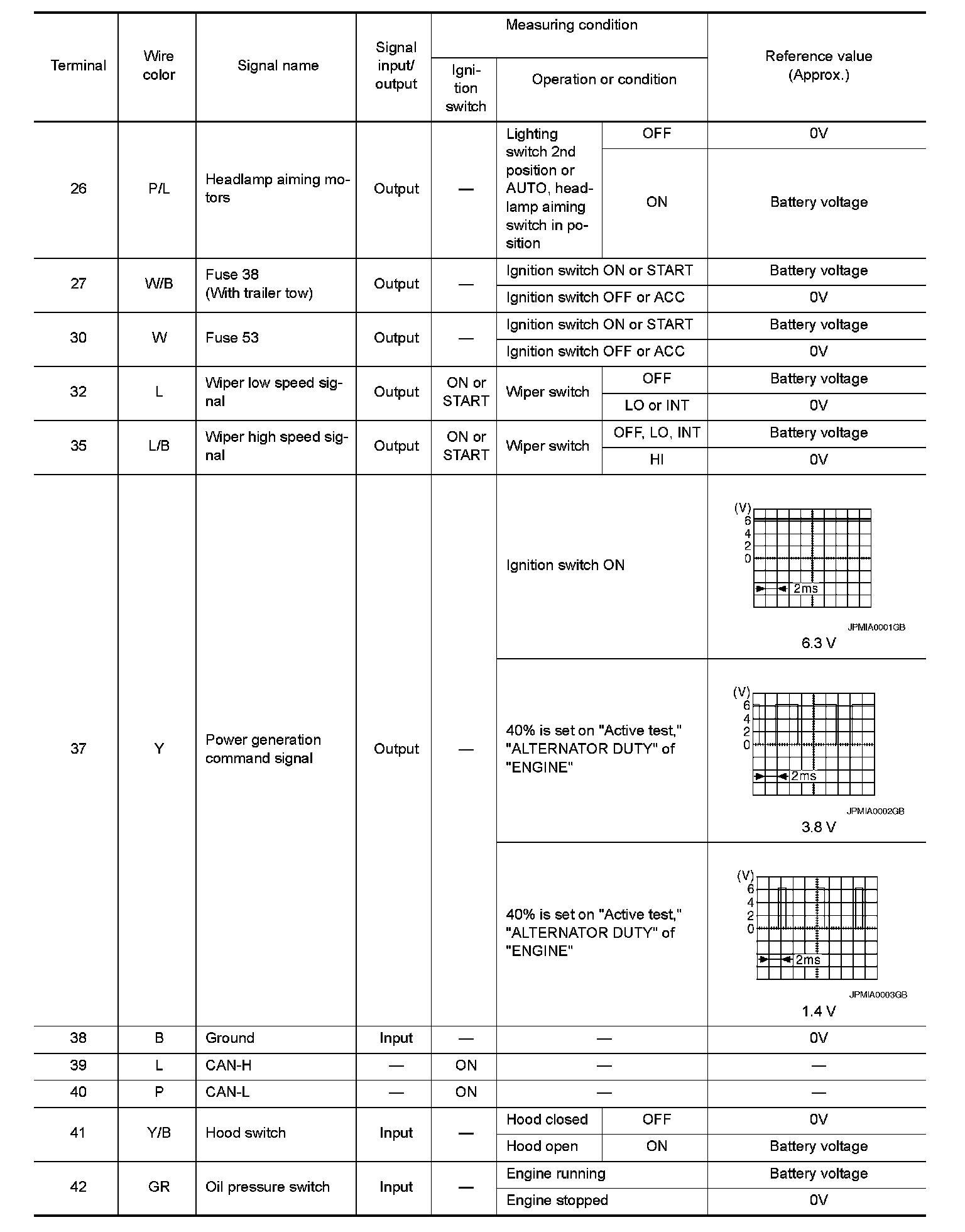 Pinout Values and Diagnostic Parameters