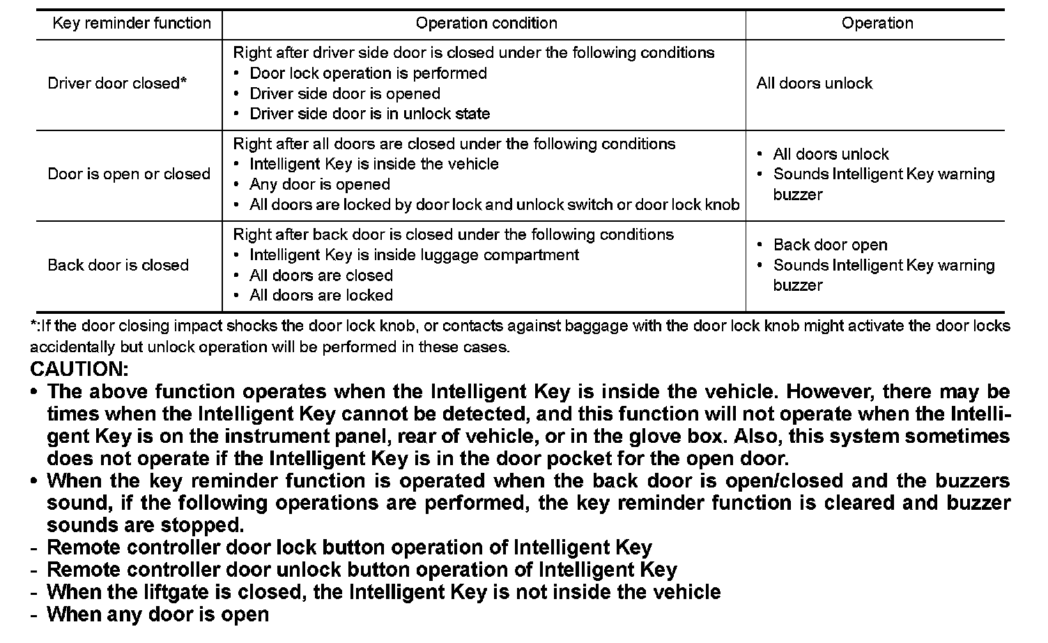 - Remote controller door unlock button operation of Intelligent Key