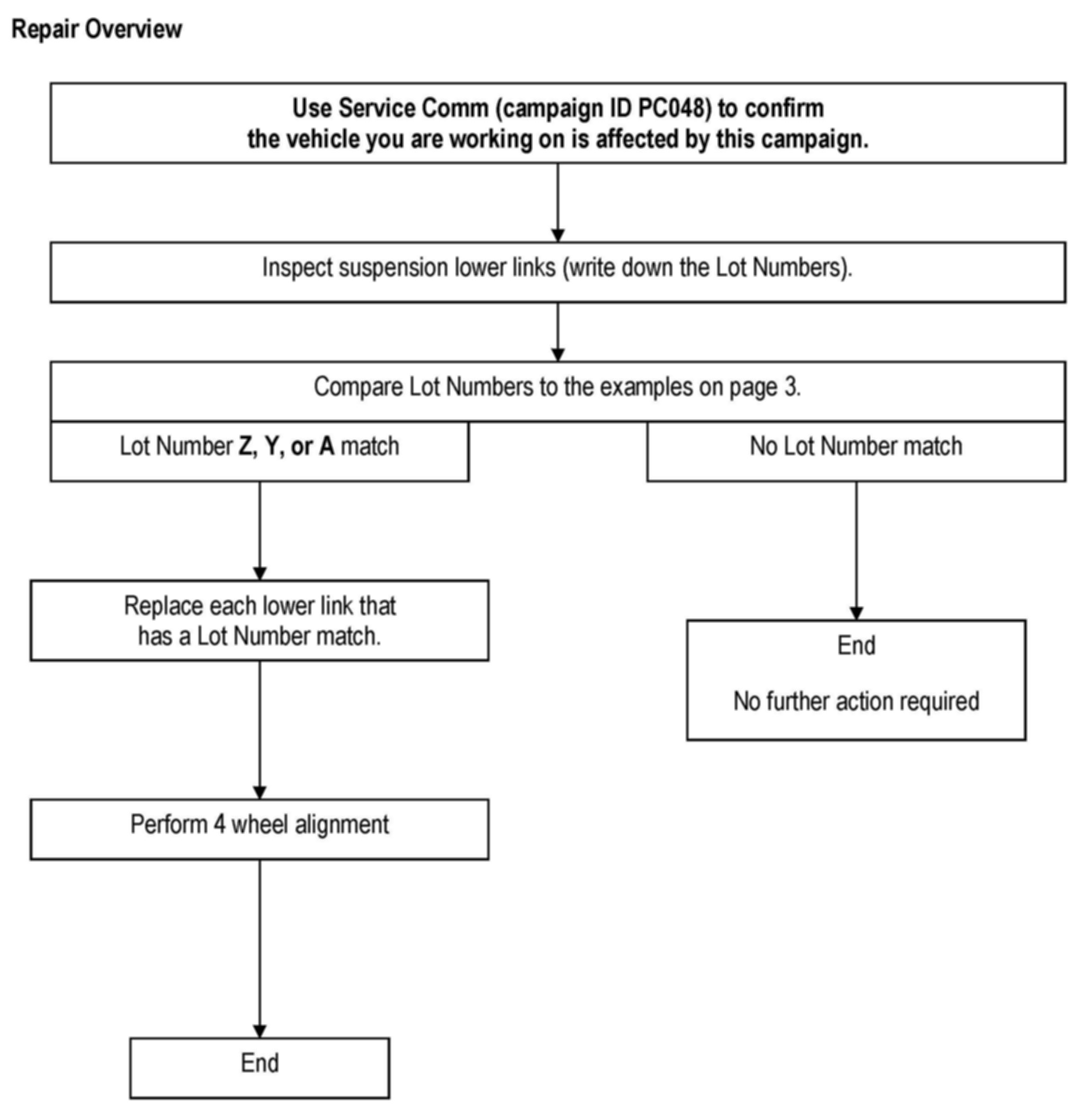 Recall PC048 - Front Lower Control Arm Replacement: Overview