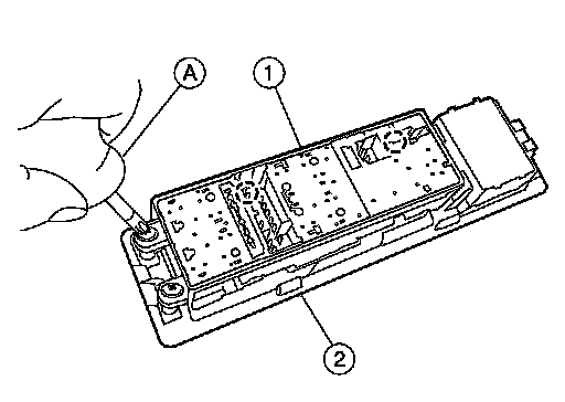 2. Using a suitable tool (A), remove the screws from the power window main switch (1), then release from the finisher (2).