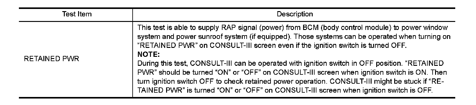 CONSULT-III Function (BCM - Retained Pwr)