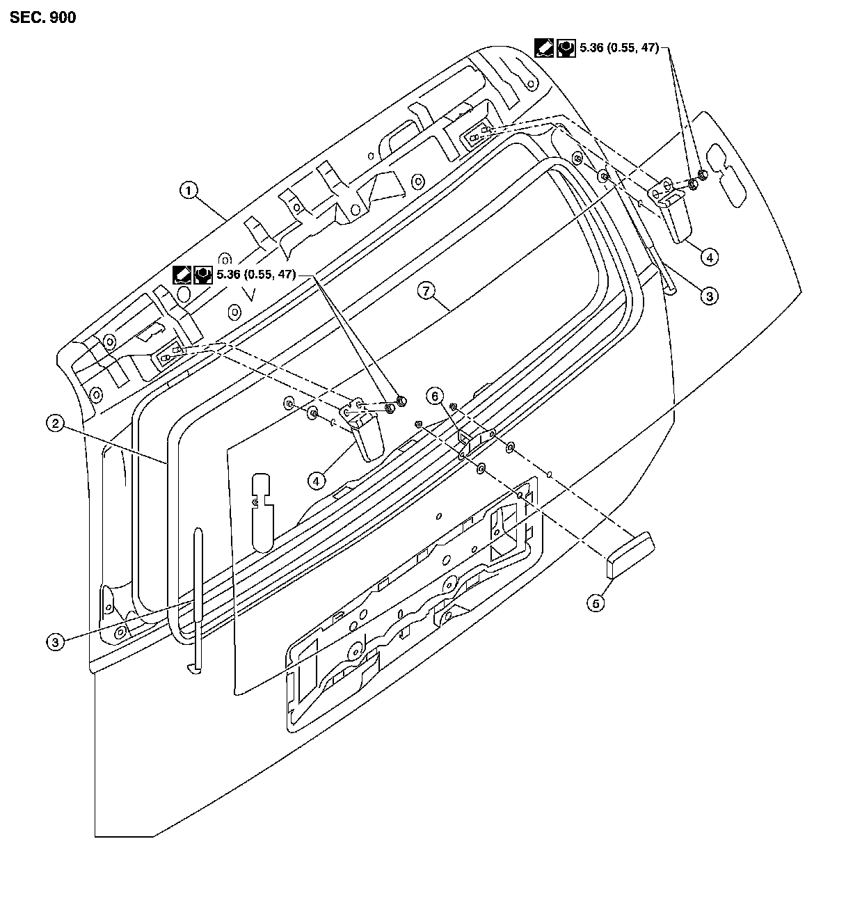 4. Remove the hinge nuts and the rear glass assembly.
