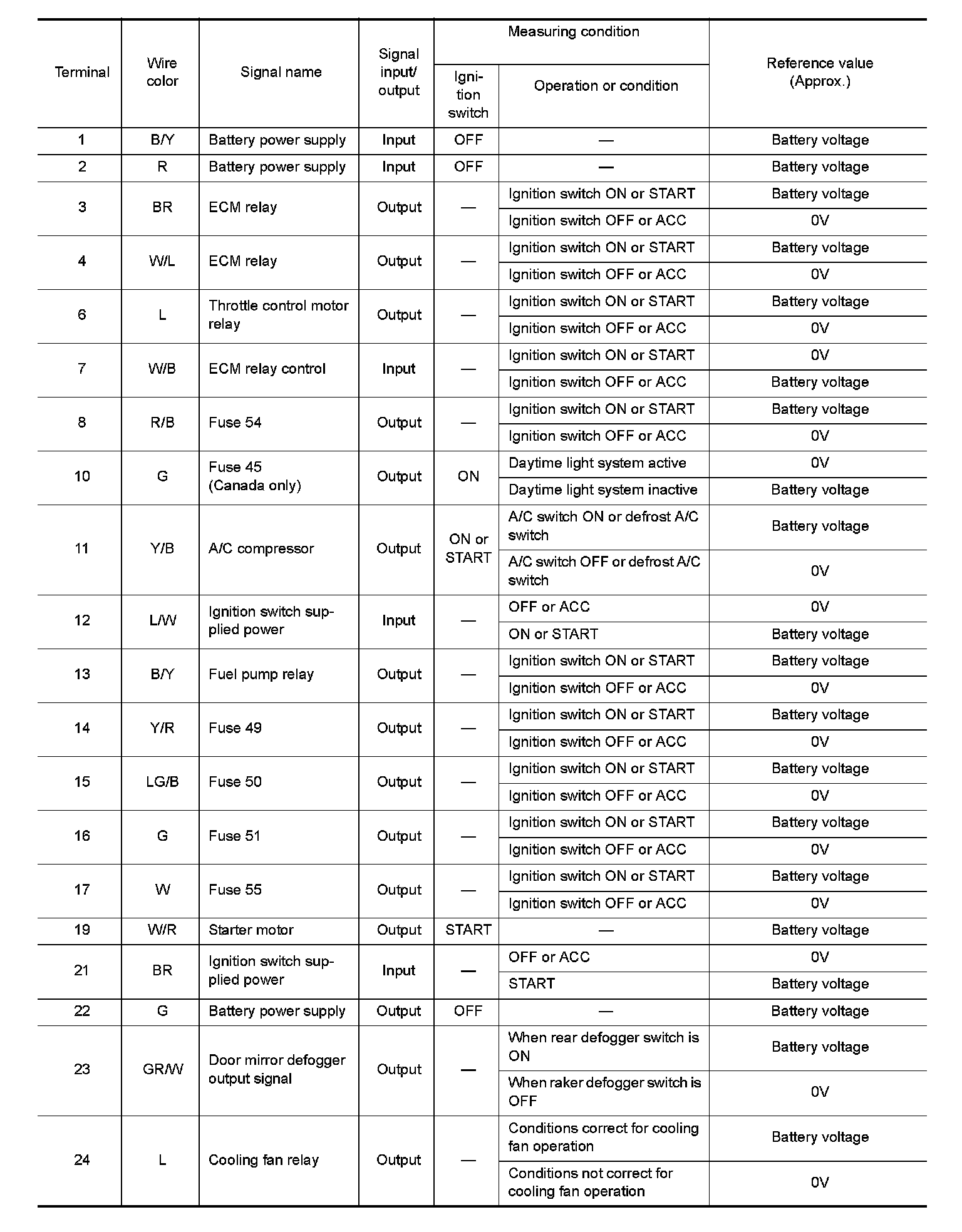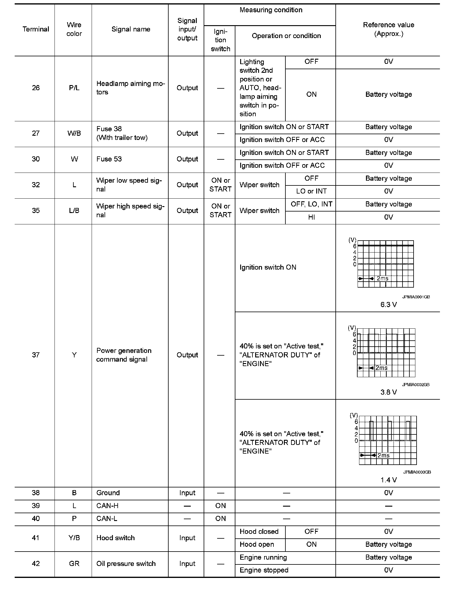 Pinout Values and Diagnostic Parameters