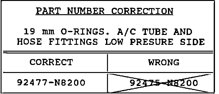 Additionally, a Technical Bulletin (ITB91-003; HA91-001) was issued with 19 mm O-rings in a bag labeled with part number 92475-N8200. This part number is incorrect. When ordering additional 19 mm O-rings, order part number 92477-N8200.