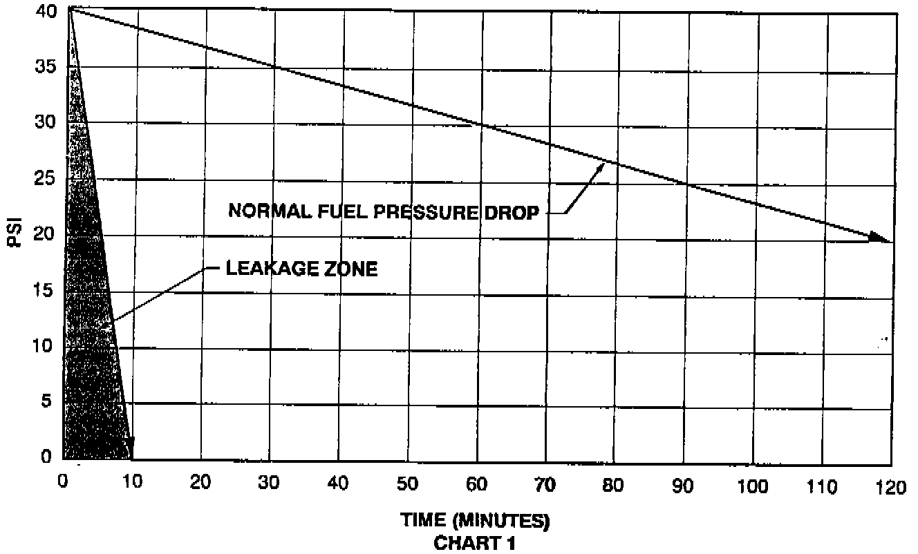 F. Compare the time and amount of fuel pressure drop to chart 1.