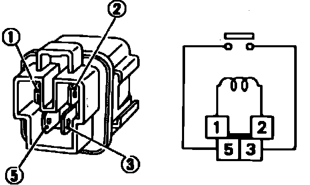 2. Apply battery voltage between terminals 1 and 2, check for continuity between terminals 3 and 5, continuity should exist.