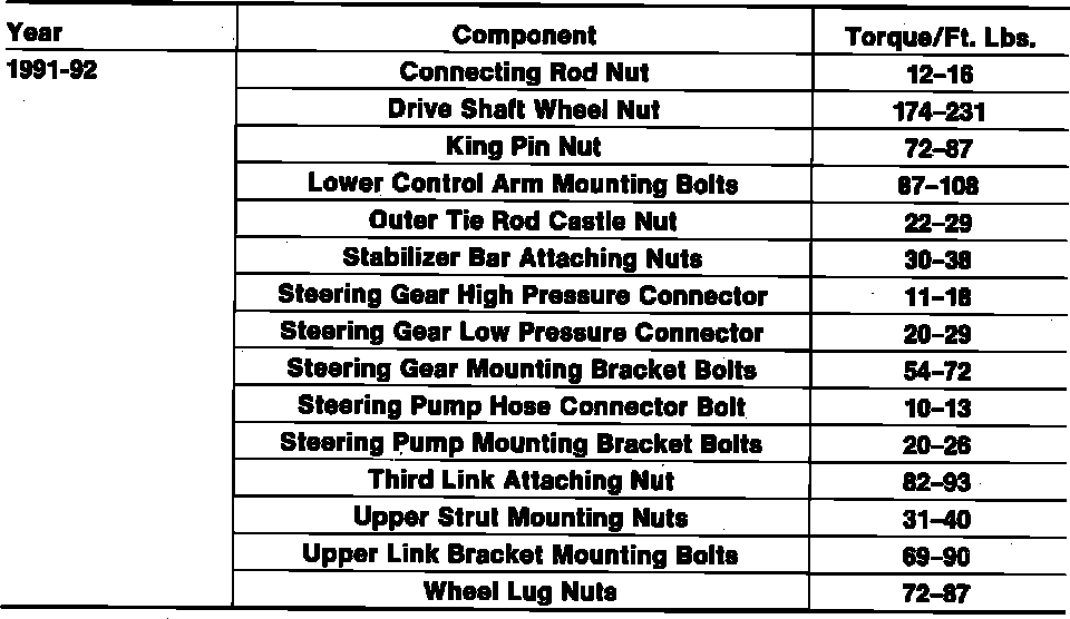 Tightening Specifications: